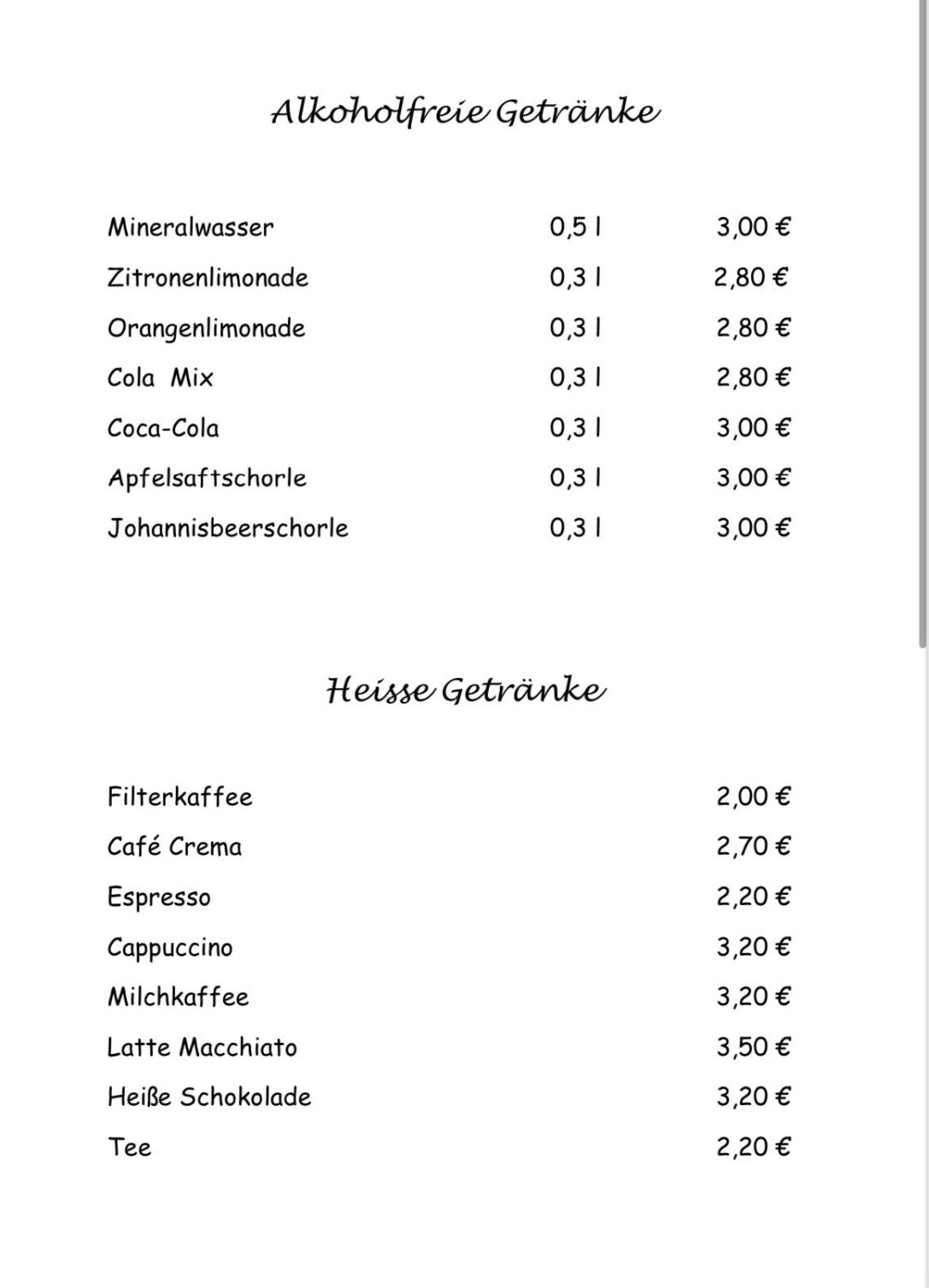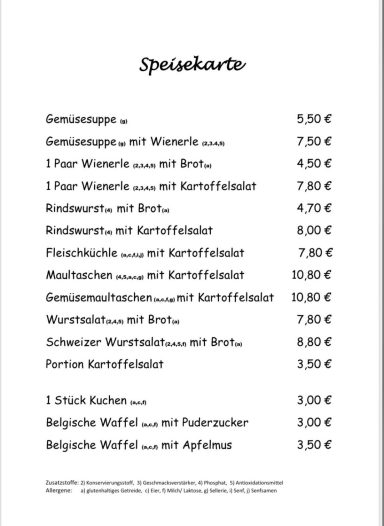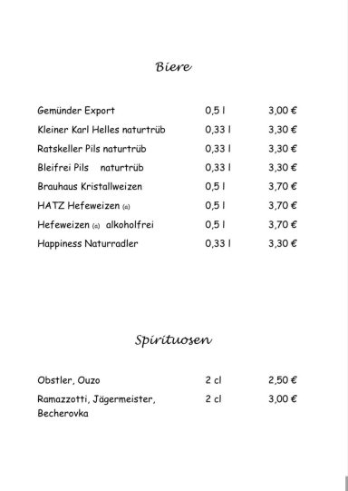 Unsere Speisekarte bietet eine Auswahl an traditionellen Gerichten